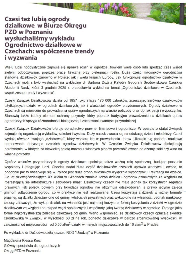 SZKOLENIA DLA NOWYCH DZIAŁKOWCÓW W OŚRODKACH DZIAŁALNOŚCI OŚWIATOWEJ W OKRĘGU OD STYCZNIA 2026 ROKU
